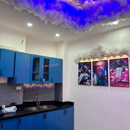 Cloudy Room - Amoureux Homestay includes a fully equipped kitchen with an air conditioner for utmost comfort.